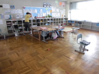 竜巻避難訓練をしました。一昨年度、三郷にも竜巻による災害がありました。いつまた発生してもいいように、訓練を通してみんなで避難のやり方を確認することができました。