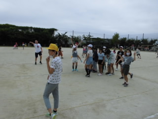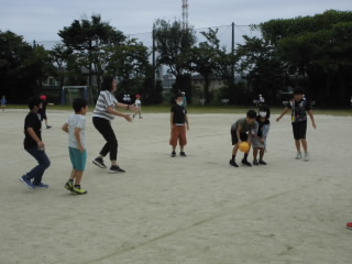 みんな、気持ちの良い汗を流しました。楽しそうですね。先生も一緒に遊んでいました。