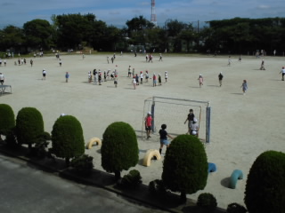 たくさんの子供たちが校庭で遊んでいました。友達やクラスで遊ぶって楽しいですよね!!ドッジボールや鬼ごっこなど、先生も一緒になって全力で遊んでいました。