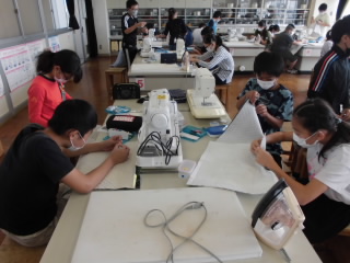昨年からミシンの使い方を学習してきました。さすが6年生!!ミシンの扱い方が上手でした。手作りのナップザックを一生懸命作っています。完成が楽しみです。