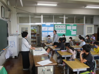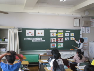 バランスよく食べることの大切さについて、栄養教諭の先生をお招きし教えてもらいました。赤グループ・黄グループ・緑グループをバランスよく朝ごはんに食べることで、体のスイッチがONになって元気に学校で勉強することができるんですね。