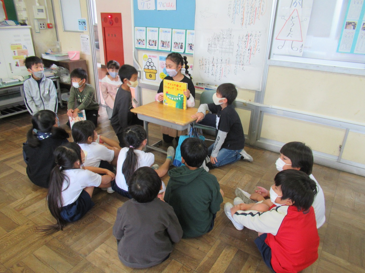 今週の読み聞かせでも、3年生が1年生に読み聞かせをしていました。3年生の子供たちは自信をもって、1年生の子供たちは興味津々に聞いていました。国語の「はんで意見をまとめよう」の学習です。彦郷小の素晴らしい取組です。また、「おはなしばたけ」の方から「子供たちに元気をいただいています。」と大変うれしいお言葉をいただきました。本当にありがとうございます。来週も、どうぞよろしくお願いいたします。