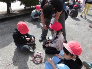 さらに、サツマイモのつるを使ってリースを作りました。