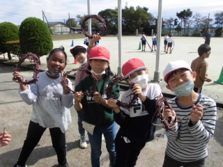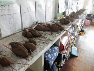 2年生が手塩に掛けて育てたサツマイモの収穫をしました。大きなサツマイモがたくさん収穫できました。後日、お家の人に協力していただきながら試食する予定です。楽しみですね。