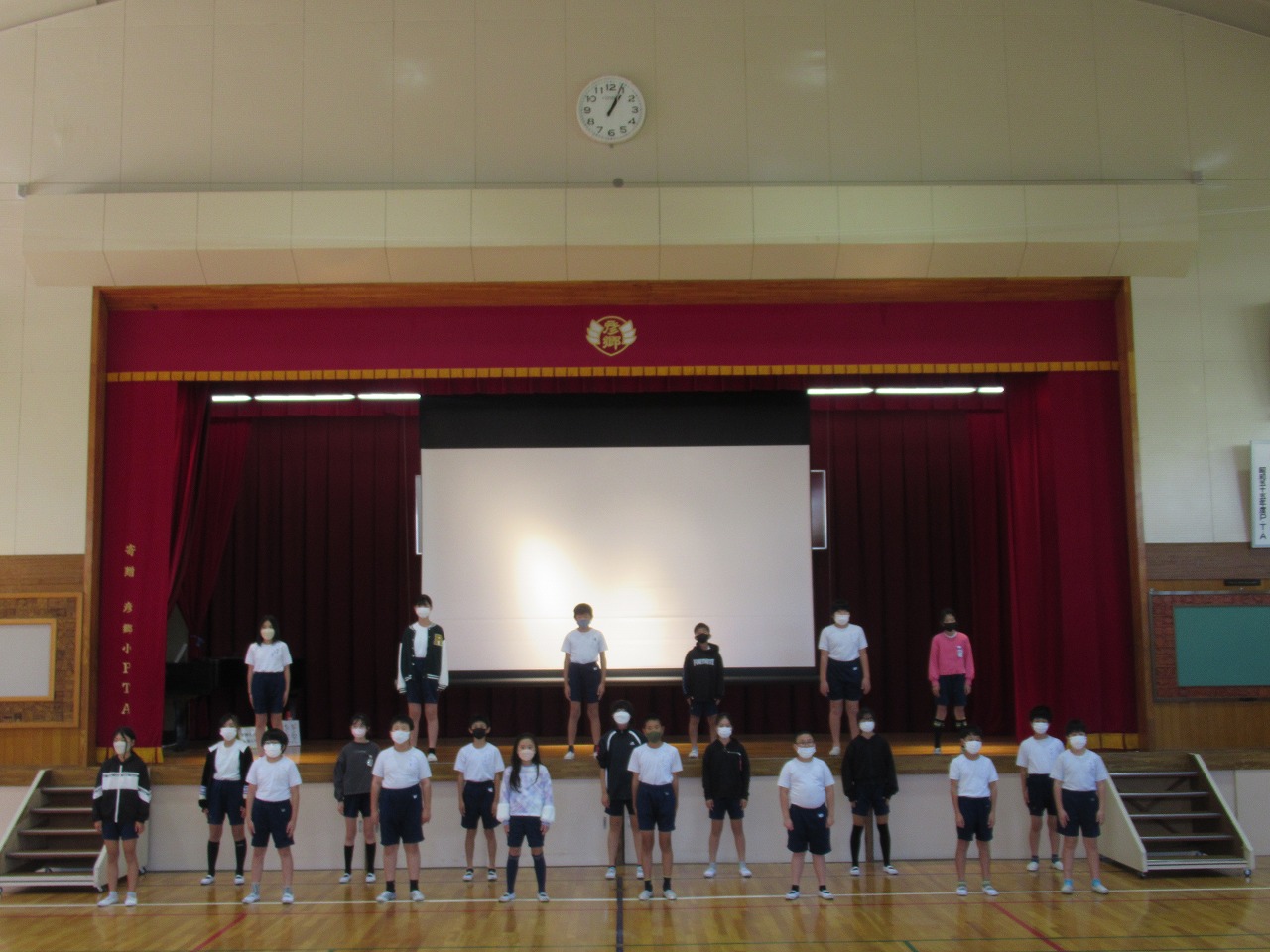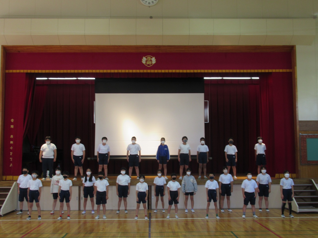 本日、昼休みに体育館で、5年生が市内音楽会に出場するクラスを決めるオーディションを行いました。多くの先生方が見守る中、クラスごとに今までの練習の成果を披露してくれました。「ふるさと」を歌いましたが、「巡りあいたい人がそこにいる やさしさ広げて待っている 山も風も海の色も いちばん素直になれる場所」という歌詞があり、心に響きました。どちらのクラスもそれぞれの良さがありました。素敵な歌声をありがとうございました。