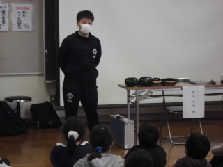 本日は、元プロボクサー世界チャンピオンの岡庭先生をお招きして、夢に向かっていくことのすばらしさについて講話をいただきました。岡庭先生は、世界チャンピオンという夢を達成し、来年からは、次なる夢でもある小学校の先生としてご活躍されます。夢を持ち続けること、そして、絶対にあきらめないことの大切さについて、お話してくださいました。