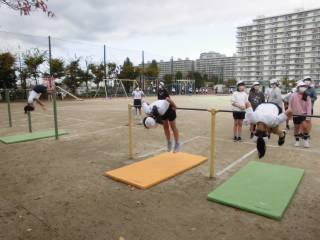 運動会も終わり、久しぶりにさわやかタイムがありました。今日から、新しい運動コースにかわり、一生懸命とりくんでいました。秋晴れの中、気持ちの良い汗を流しました。
