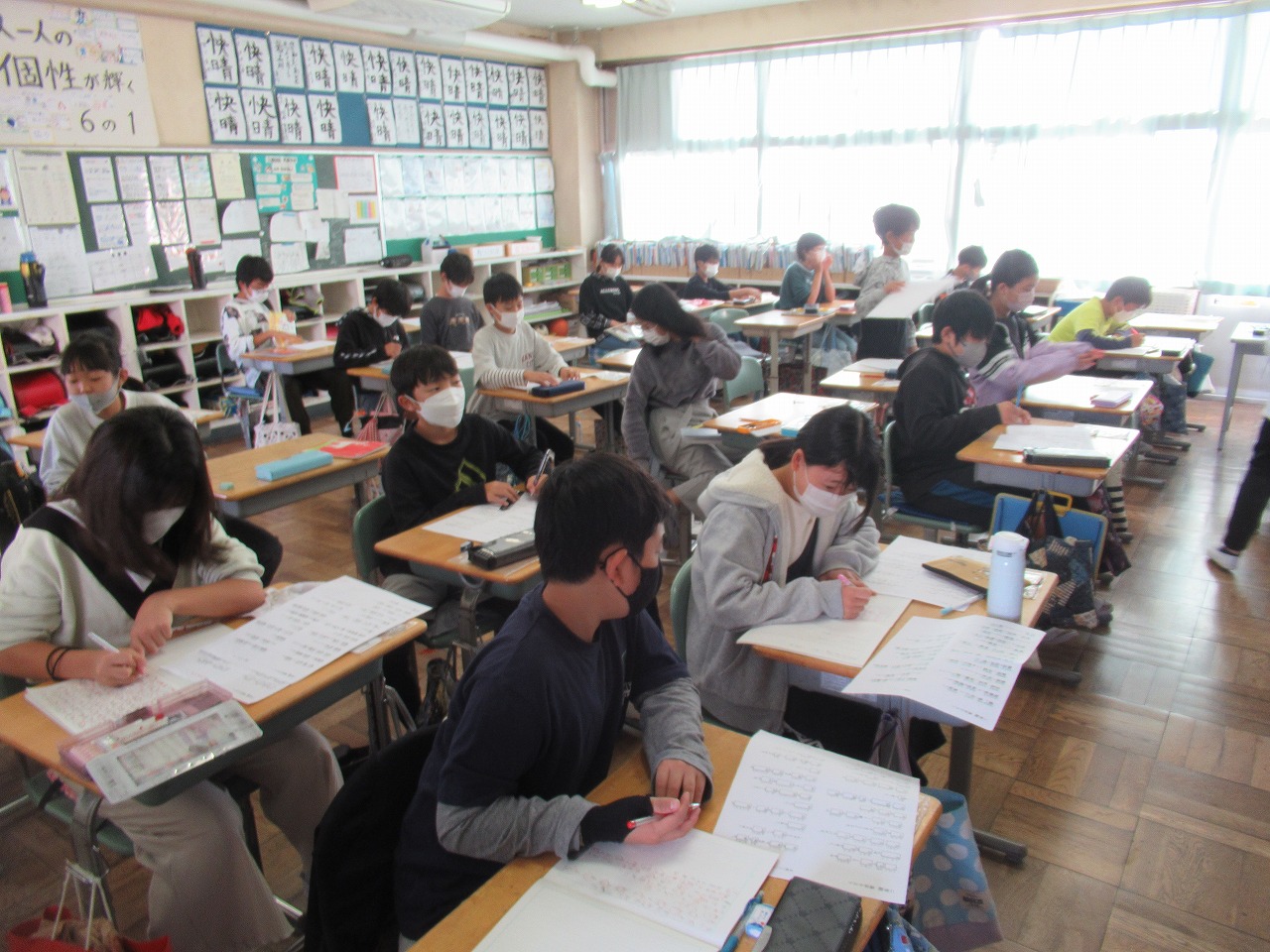 今週は、パワーアップタイムでスタートしました。漢字や計算など、プリント学習に取り組んでいました。どのクラスも真剣に取り組み、落ち着いた態度に感心しました。