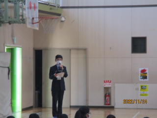 2年生と6年生による、音読朗読朝会の発表がありました。2年生は、歌も取り入れて学年発表後各クラスで発表を行いました。振り付けがとてもかわいらしかったです。6年生は、力強い発表で迫力を感じました。全員で、乱れることのない声出しで、最高学年の威厳が感じられました。すばらしい音読朗読朝会となりました。