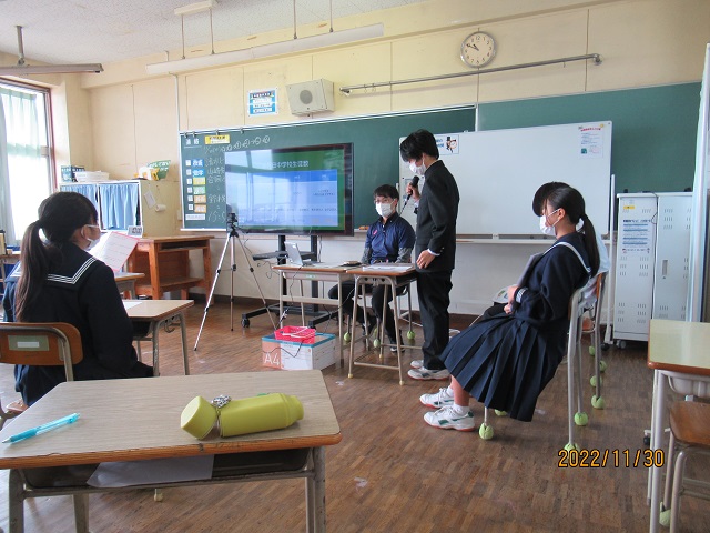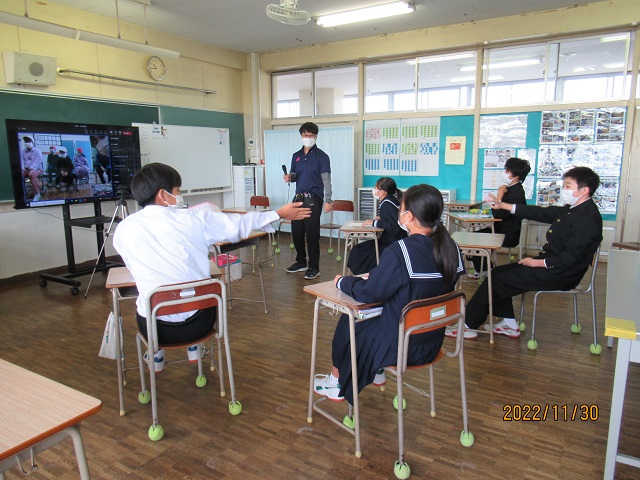 写真4~6 オンラインで早稲田中学校区の前間小学校、後谷小学校と合同学習会を行いました。早稲田中学校紹介、レクリエーションに取り組み、楽しい時間を過ごすことができました!!