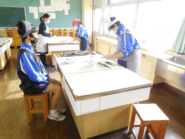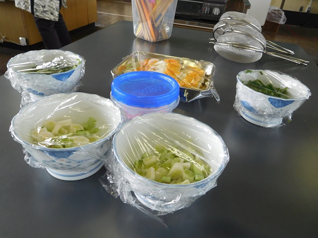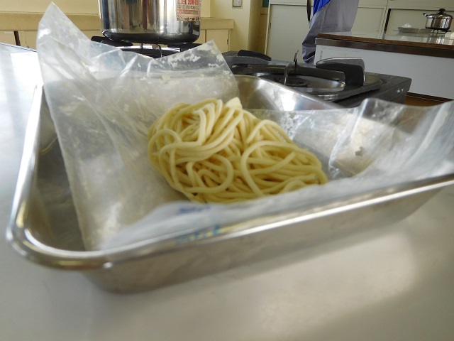 写真1~4 学期末の調理実習。手打ち麺でラーメン作りを行いました!