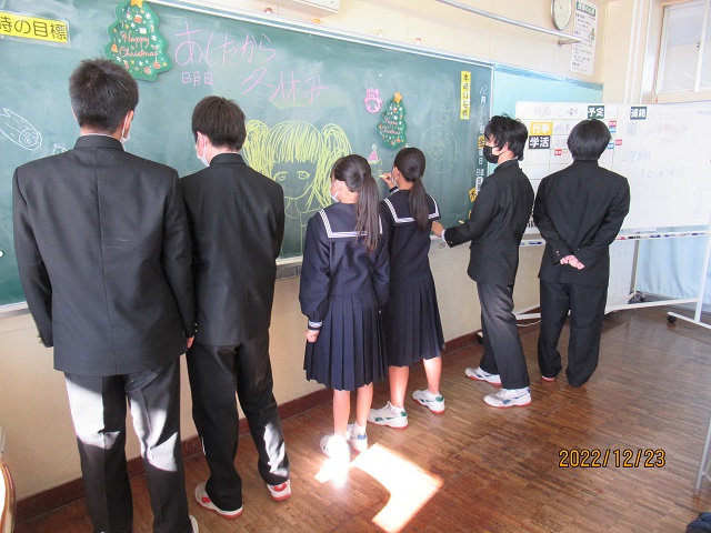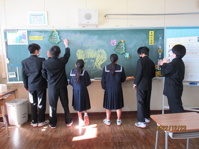 写真8・9 冬休み開始直前、みんなで集合写真を撮影しました。皆さんの満面の笑みは始業式に配付する学級通信で紹介します!