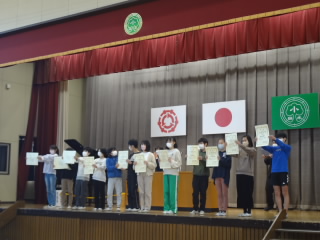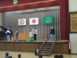 今日で二学期が終わりました。子供達は、2学期の立てた目標達成のために一生懸命がんばりました。代表児童の発表では、持久走大会のこと、勉強のこと、陸上大会のことなど、それぞれが頑張ったことを堂々と発表する姿が素晴らしかったです。また、表彰ではたくさんの賞状を一枚一枚校長先生からもらいました。たいへんすばらしかったです。