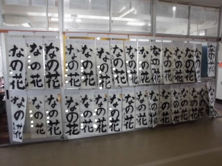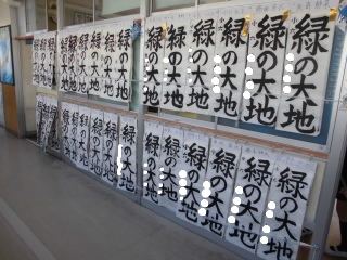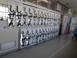 教室の廊下前に、子供達が頑張った書き初めの作品がそろいました。すばらしい作品ばかりで、見とれてしまいます。