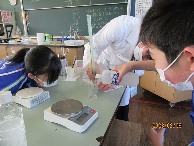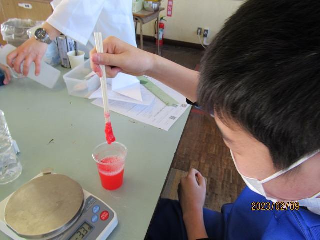 写真3・4 理科の時間、スーパーボール作りに取り組みました。