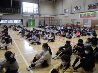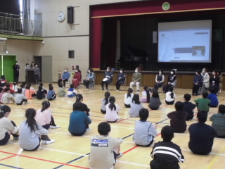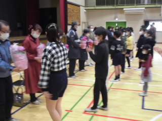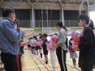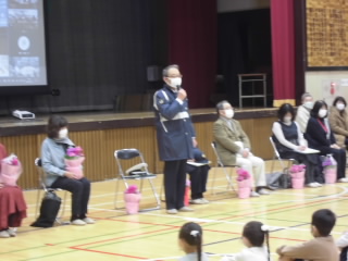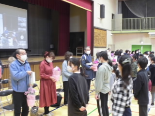 運営委員会の児童が中心となって、お手紙や花束、そして歌のプレゼントをしました。とても喜んでくれました。久しぶりのありがとう集会は、あたたかく、すてきな会になりました。地域の皆さん!本当にありがとうございました。これからも、よろしくお願いします。