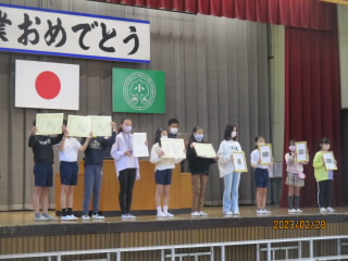 本日、3月の全校朝会がありました。朝会では、主に表彰をたくさん行いました。