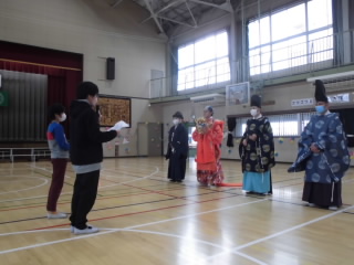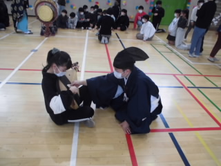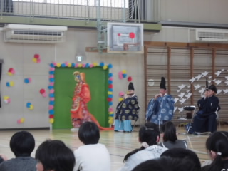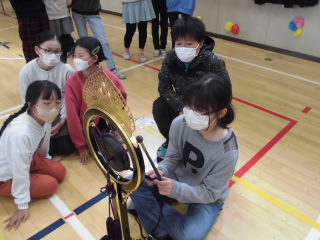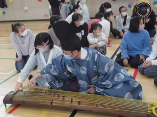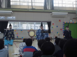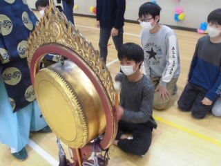 音楽の授業で学習した、笙(しょう)・篳篥(ひちりき)・龍笛(りゅうてき)・琵琶(びわ)・箏(そう)の生演奏を6年生が真剣に聴いていました。心が清められるような、美しい音色に癒されました。