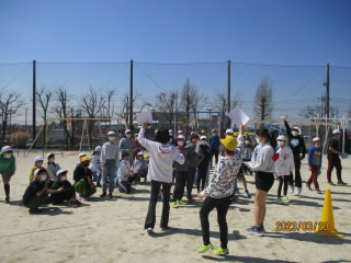 最後の思い出作りに、学級対抗「借り人リレー」「陣取りゲーム」をやりました。自分たちで、企画や準備をして最後の6年生が楽しい思い出作りができるようにしていました。よい天気の下で、とても楽しくレクができました。
