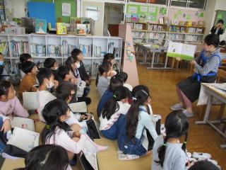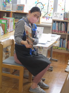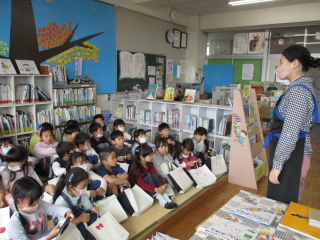 司書教諭の先生に、図書館の使い方と読み聞かせをしていただきました。