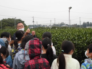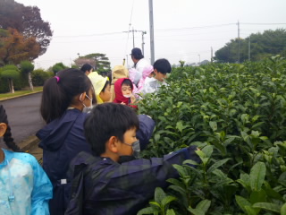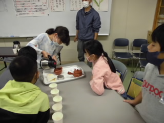 入間市の狭山茶畑の見学に行きました。茶摘み体験やお茶のおいしい入れ方について体験しながら教えてくださいました。