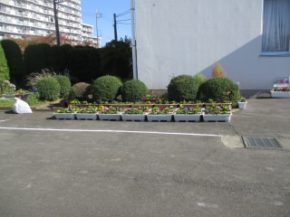 PTAの保護者の方々が、学校のあいさつ通りの花植えをしていただきました。ありがとうございました。