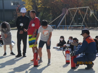 昨日、火災を想定した避難訓練がありました。消防署の方をお招きし、消火訓練を行いました。6年生は学校の代表として、体験しました。真剣に取り組んでいて素晴らしかったです。