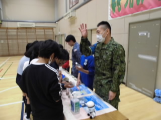 6年生自衛隊の皆様による講話・体験学習