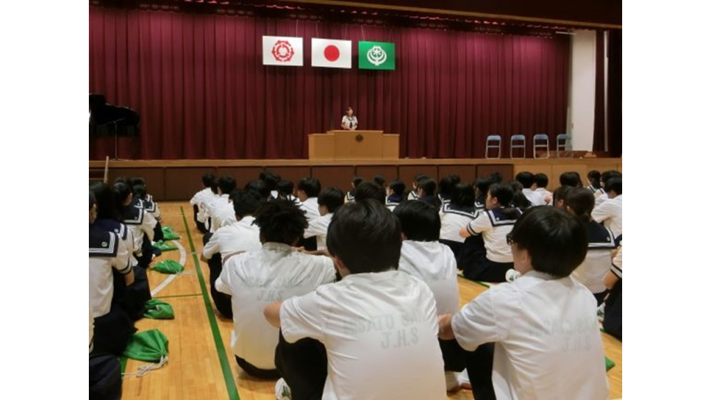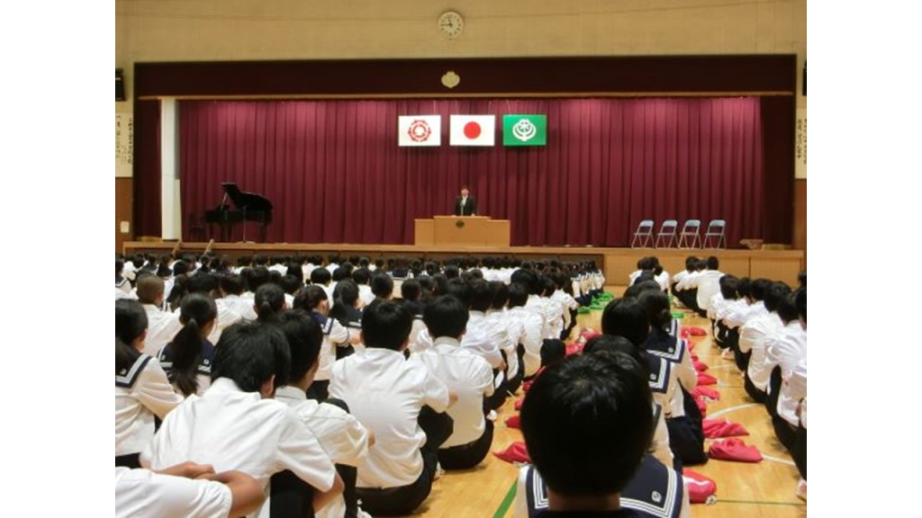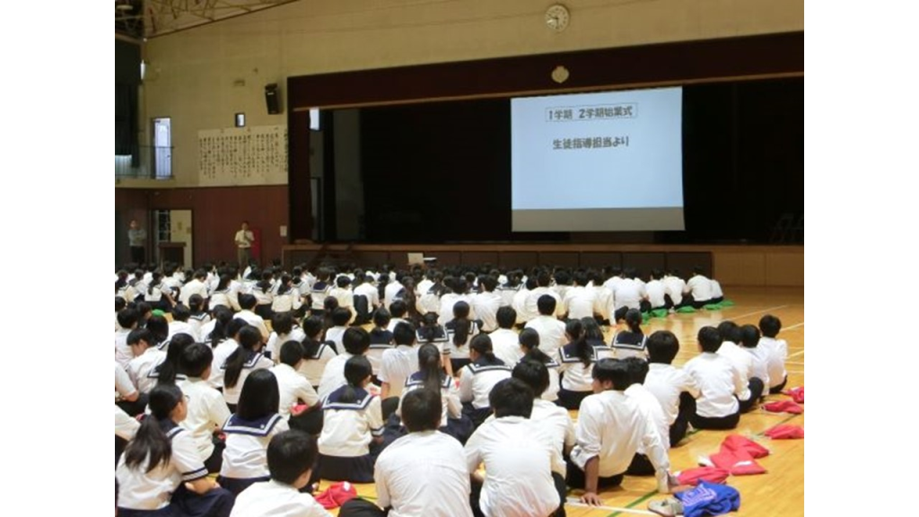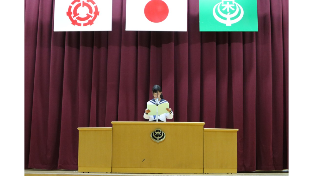 始業式では、各学年の代表生徒の発表があり、課題や目標について話をしてくれました。