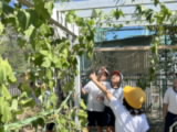 4年生が理科の授業でヘチマの観察を行いました。4月に苗を植え、大きくなったヘチマに驚いていました。