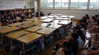 避難訓練のまとめには、校長先生から命を守ることの大切さについてお話していただきました。
