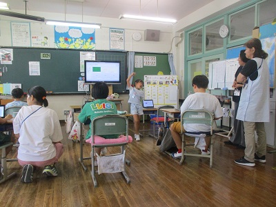 毎月2回程度、ICT教育のプロフェッショナルの「ICT支援員」さんが勤務してくださり、アドバイスを受けたり授業の補助をしていただいています。