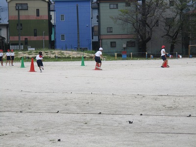 リレーは、子供たちが大好きな「ホームラン教材」です。今は始まったばかりですが、この後、走り方やバトンパスの仕方が上手になって、熱戦を繰り広げること間違いなしです。今尾の展開に期待が持てます。