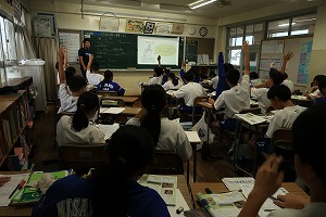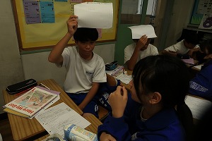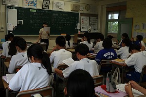 給食後の1年生の教室では・・・、どの授業も目を輝かせて真剣です。また、先生の様々な問いかけへの反応も素晴らしく、よい学びの雰囲気です。
