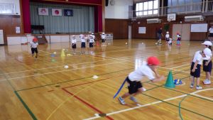 三郷の「おもしろ遊学館」の先生方による「わくわくデリバリー教室」が行われました。今回は1年生の体育で、夢中になって運動する楽しさを味わいました。走の運動やしっぽとりリレーなど、子供たちは夢中になって全力で取り組みました。