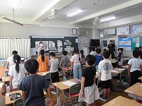 給食センターから栄養教諭の先生が来校され、1年生の教室にて「食の指導」をしていただきました。正しい姿勢や箸の持ち方をわかりやすい言葉で説明してくださいました。