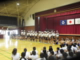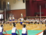 朝の時間に来週行われる陸上記録会の壮行会が行われました。