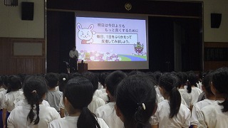 その後、安全のお話と今月の生活目標についてお話がありました。