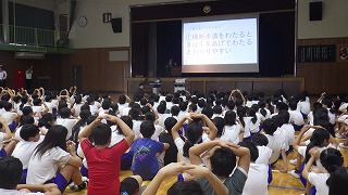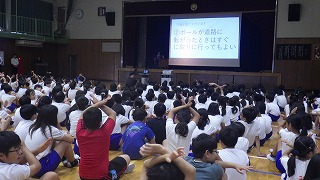 今回は2年生、5年生、あおぞら学級、ひだまり学級が体育館に入りました。