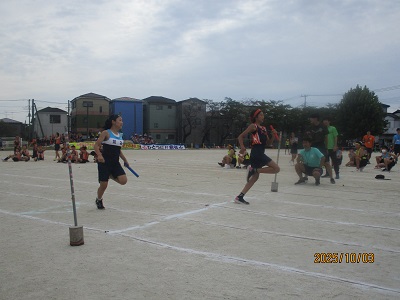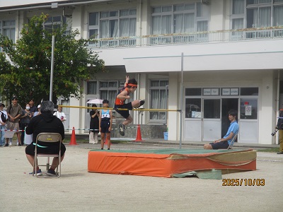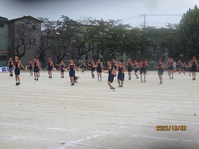 午前8時前には、近隣3校陸上記録会の準備が整っていましたので、会場となる校庭を見ながら登校してくる在校生の朝のあいさつが、いつもより元気でした。