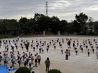 運動会全体練習を行っています。入退場の練習を何回か繰り返し行い、だんだんとすばやくきれいに並ぶことができるようになってきました。本番は天候がちょっと怪しいようですが、無事運動会が開催できるよう、てるてるぼうずに願掛けしようと思います。