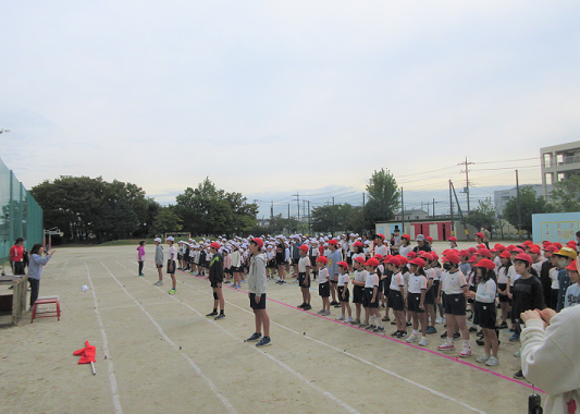 今日は、運動会の全体練習をしました。赤組も白組も、張り切って練習していました。