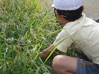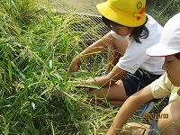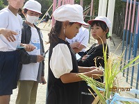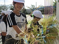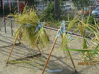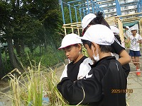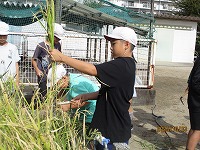 春に校内の一角に植えられたイネが大きくなり、お米の収穫の時期を迎えました。子供たちの笑顔がはじける収穫の様子をご覧ください。