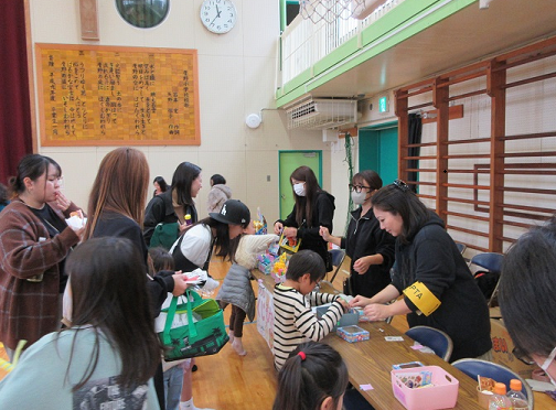 10月25日に、PTA主催の「たかの秋まつり」が行われました。スーパーボールすくいやストラックアウト、輪投げ、型抜き、くじ引き、射的など、役員さんたちが楽しい遊びをたくさん用意してくださり、子どもたちは大喜びでした。PTA役員の皆様、保護者の皆様、ありがとうございました。