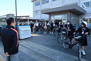 また、2年生では11月の「職場体験学習」でお世話になる事業所への挨拶のため、給食終了後、グループごとに学校を緊張しながら出発していきました。