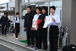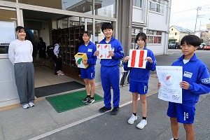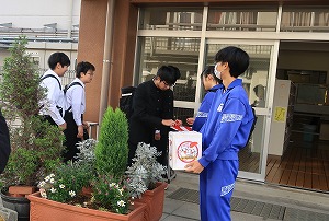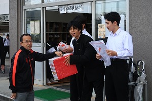 各学年「昇降口」前では、学級委員による「赤い羽根募金活動」が行われていました。