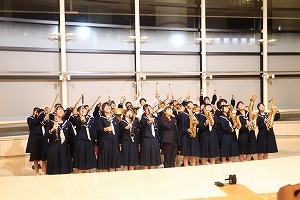大舞台で、仲間と演奏する喜び・音楽を奏でる喜びを伸びやかに表現し、会場からは大きな拍手が届けられていました。「感動=心の高まり」が響き渡っていました。以下は、演奏を終えた記念写真時の一コマになります。