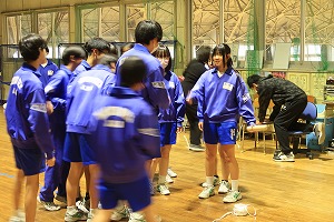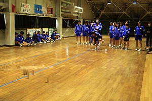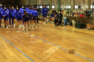 今日の午後の体育館では、2年生が三郷特別支援学校の生徒さんと、「モルック」ゲームで交流を深めていました。的に当てることに苦戦しながらも、皆で楽しむ様子が伝わってきました。