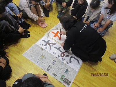 一画一画の筆の動かし方、留意点を子供たちによく分かるようにかみ砕いてかみ砕いて、具体的かつていねいに子供たちにご指導くださいました。