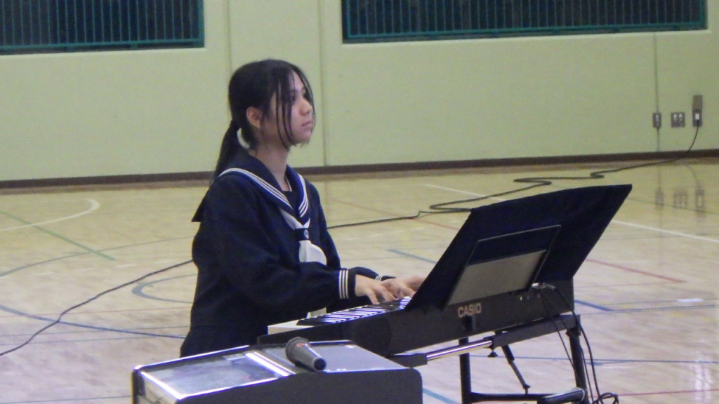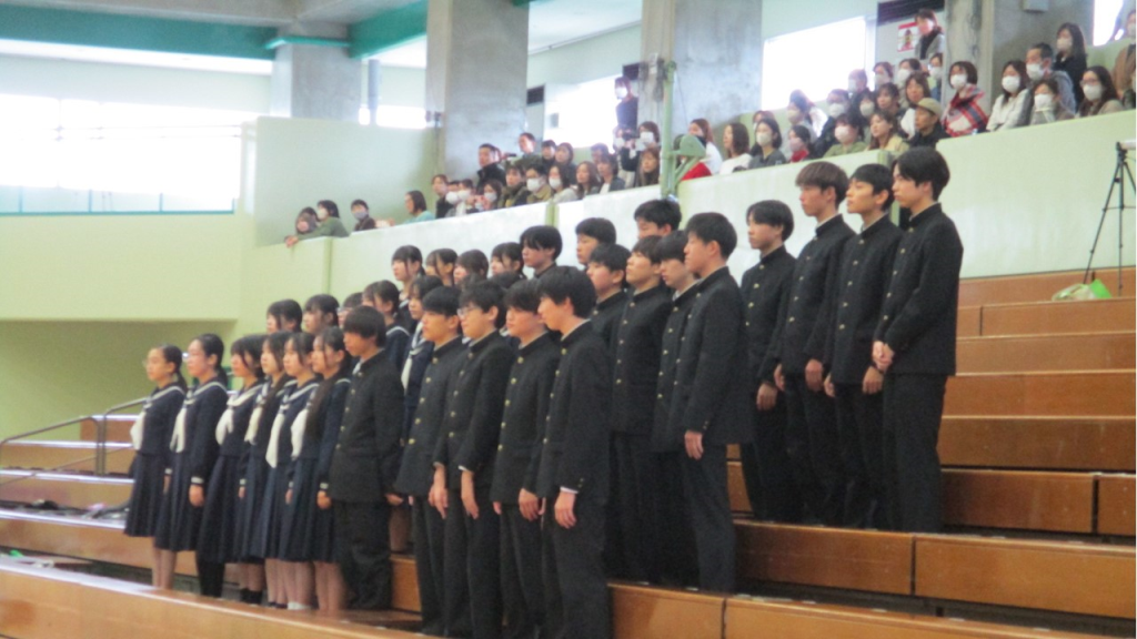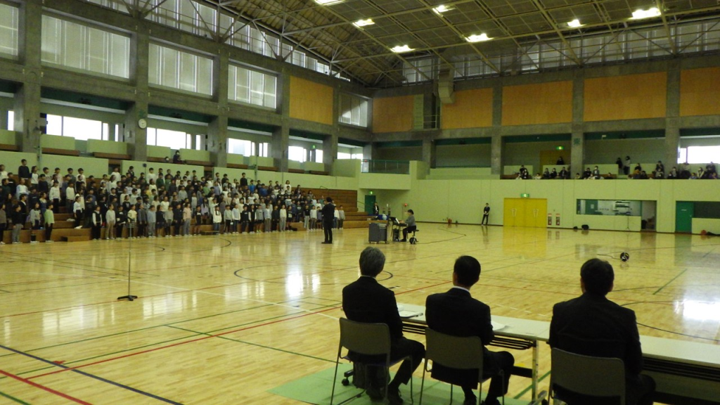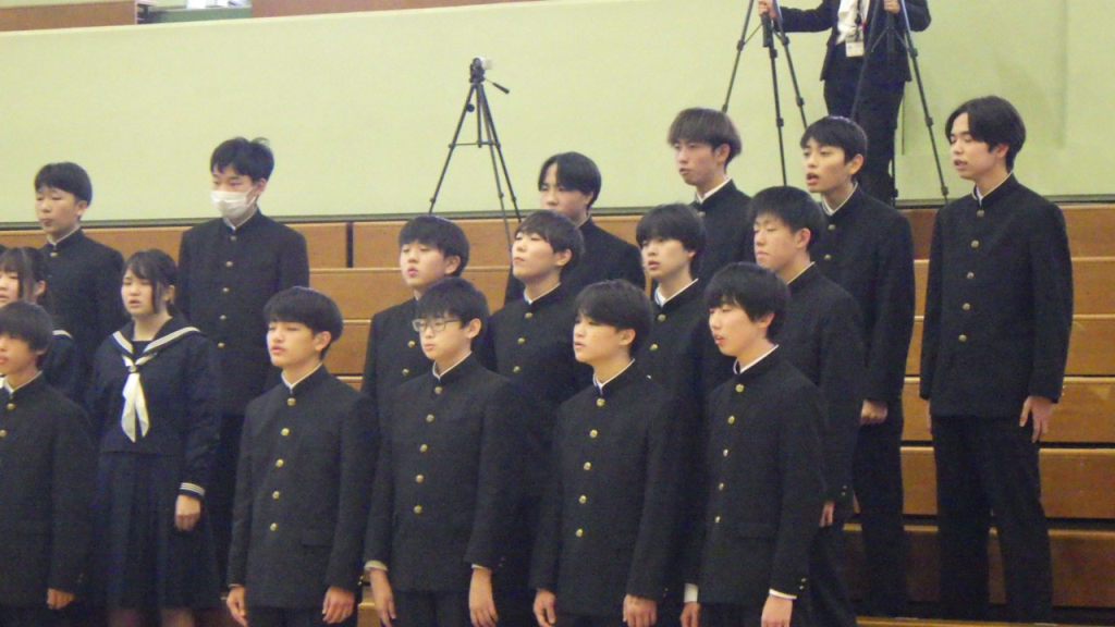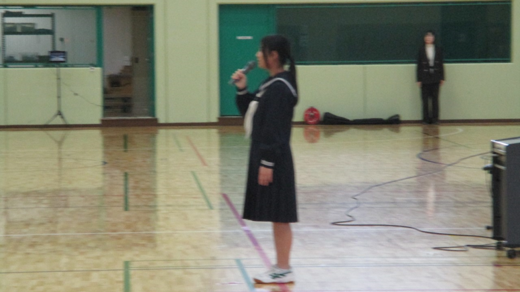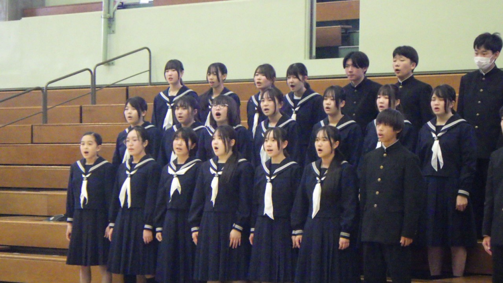 合唱コンクールで最優秀賞をとった3組は、素敵な歌声を総合体育館でも響かせてくれました。